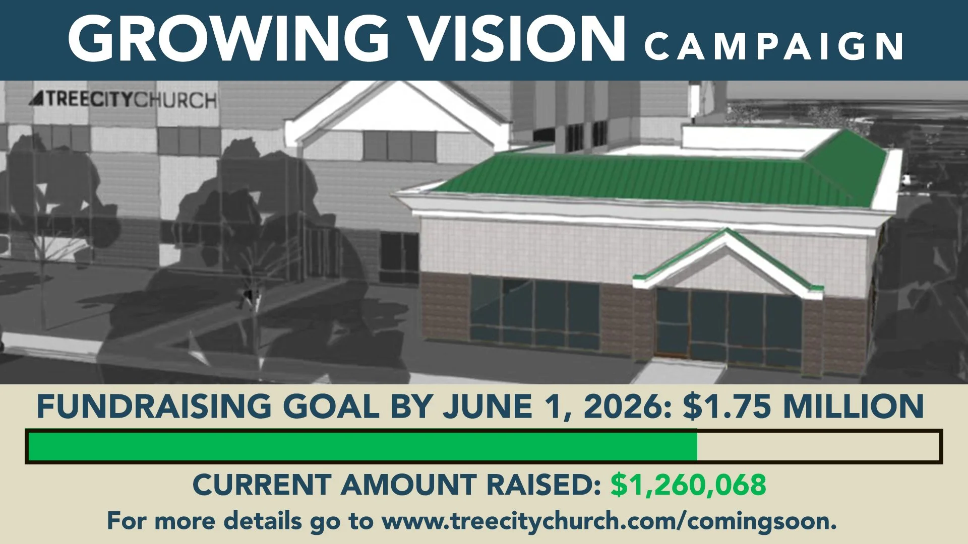 With the generosity of many people, as of February 22, 2026, we have raised $1,260,068 of our $1.75 million goal. We currently need another $489,932 to fund this project debt free!